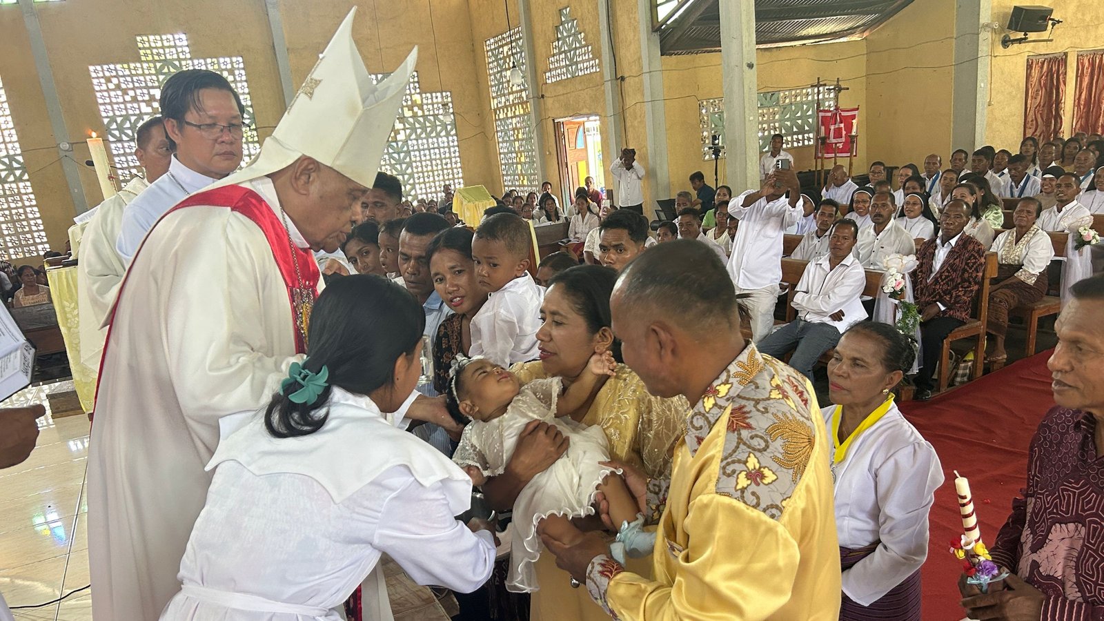 Foto: Pembaptisan 5 Anak saat Perayaan Peresmian Paroki Santa Perawan Maria La Salette Botung, Dekenat Adonara.