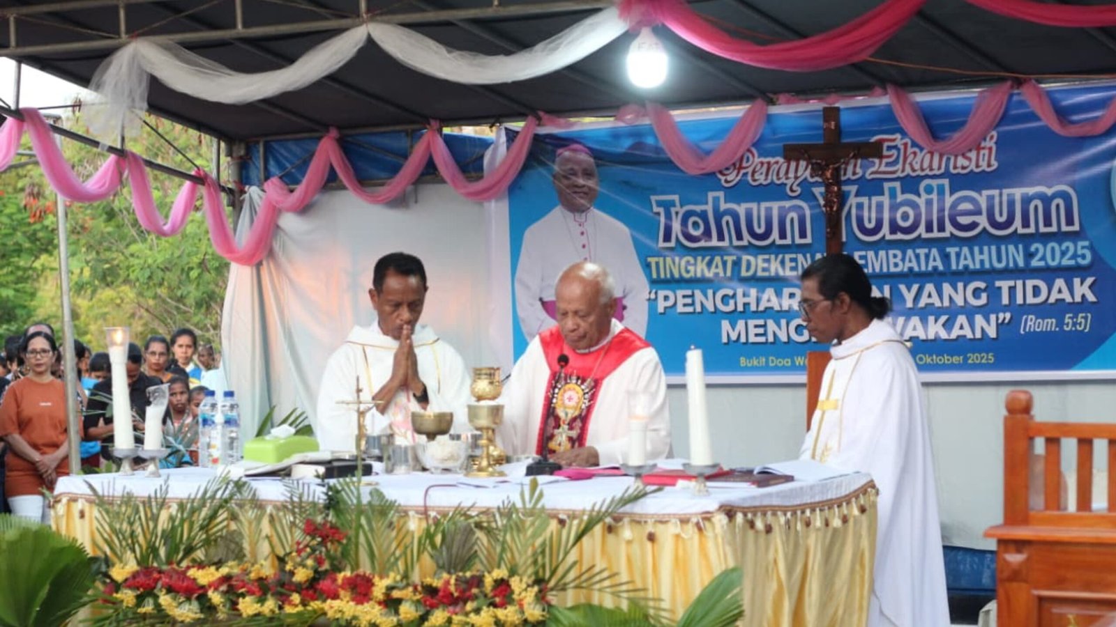 Mingar, 28 Oktober 2025 – Umat Katolik se-Dekenat Lembata melaksanakan ziarah rohani bersama di bukit doa Watomiten, Paroki Mingar, sebagai bagian dari perayaan Tahun Yubileum 2025 di Keuskupan Larantuka. Kegiatan ini menjadi ungkapan syukur umat sekaligus sarana memperdalam iman dalam semangat pertobatan dan pembaruan hidup kristiani.