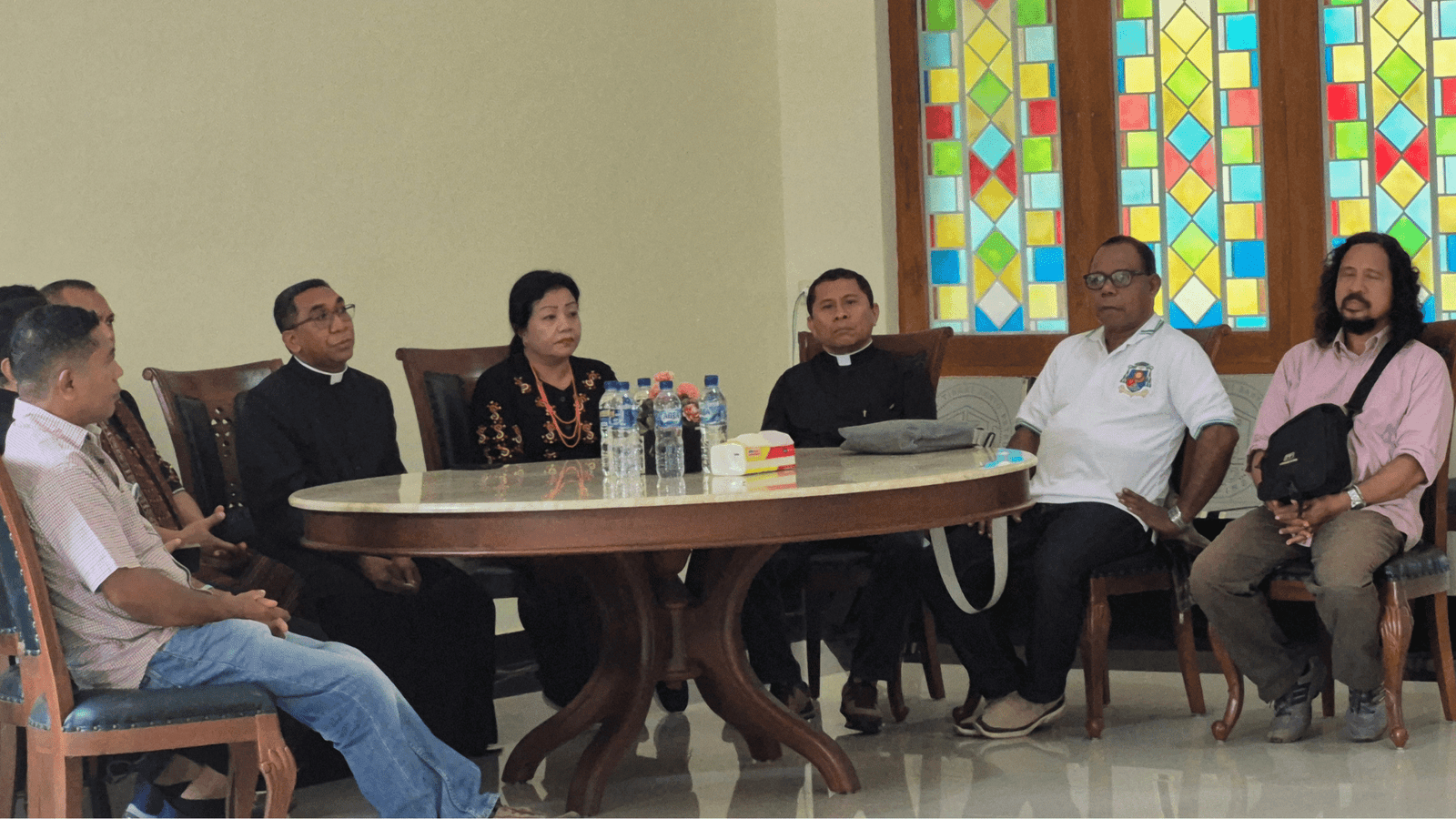 Uskup Terpilih Keuskupan Larantuka, Mgr. Yohanes Hans Monteiro, dijemput langsung oleh Ketua Panitia Pentahbisan, RD Adeodatus Hendrikus Leni; Sekda Flores Timur, Petrus Pedo Maran beserta istri; Seksi Acara dan Seksi Komsos; serta perwakilan tokoh adat dan masyarakat.
