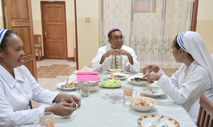 Momen paling mengharukan terjadi saat acara ramah tamah. Usai menikmati secangkir kopi pahit tanpa gula di pendopo, Mgr. Hans menuju ruang makan anak-anak panti. Di sana, sekitar dua puluh anak sudah duduk dengan rapi dan tenang. Sang Gembala tidak langsung menuju meja makannya sendiri; beliau menghampiri anak-anak tersebut, bersenda gurau, dan memimpin doa berkat sebelum mereka mulai menyantap sarapan.