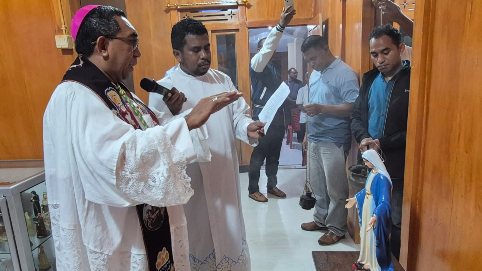 Pemberkatan dilakukan langsung oleh Uskup Larantuka, Yohanes Hans Monteiro, disaksikan para imam, biarawan-biarawati, serta karyawan dan karyawati keuskupan. Perayaan berlangsung sederhana, namun sarat makna rohani dan emosional bagi seluruh keluarga besar Keuskupan Larantuka.