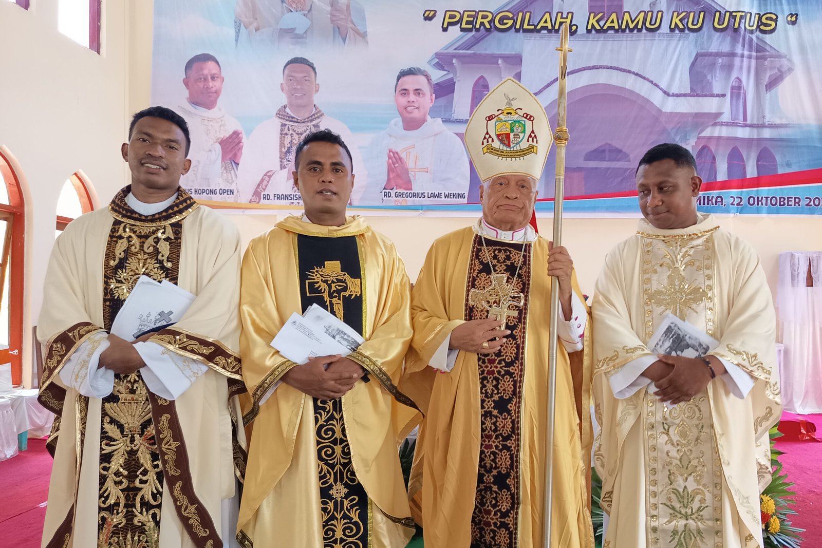 Tema perayaan tahbisan “Pergilah Kamu Kuutus” diambil dari amanat Yesus sendiri, dan menjadi penegasan kembali semangat misioner Gereja Lokal Keuskupan Larantuka, Gereja yang diutus untuk melayani dan bersaksi tentang kasih Kristus di tengah dunia.